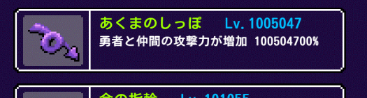 | ②あくまのしっぽ | 38213200% | 7.6430E+37 | 7.6430E+37 |