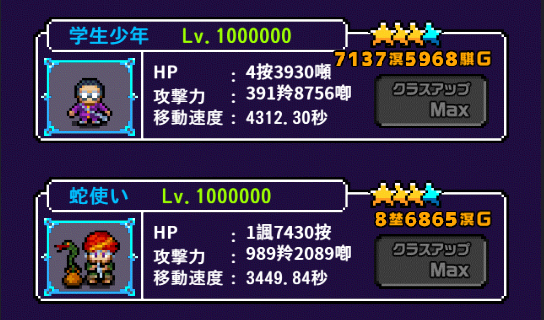 獲得できるゴールドが指数的に増加するために、ゴールドをはじめとした全てのパラメータが天文学的な数値に到達します。